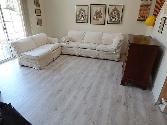 Two story condominium with large, high ceiling living room with two large sky lights, newer rear stone patio addition, wood burning fireplace, new wood floors and new quartz kitchen counters and newly modified white kitchen cabinets. All new paint in 2021. Special stained glass in master bath with large spa tub. Windows are new. Master bath has a very large soaking tub with "jacuzzi" jets. Upstairs baths are both "full" with a half bath downstairs.
