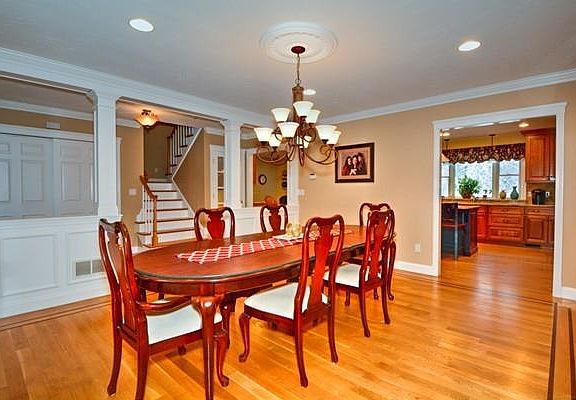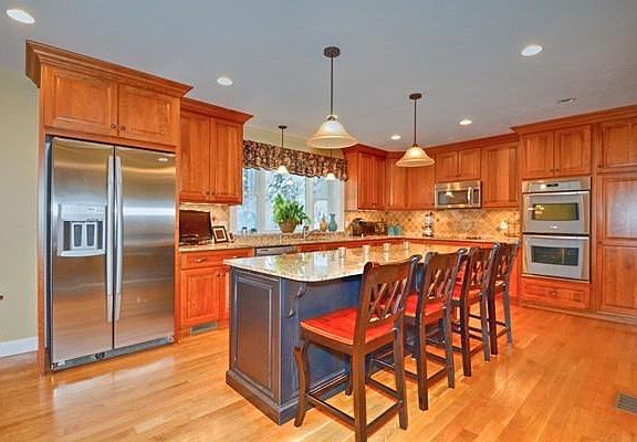 A HOME WITH THE KITCHEN AND FAMILY ROOM YOU'VE ALWAYS DREAMED OF! This stunning BUILDER'S HOME is on the market for the first time and exhibits impressive custom woodwork throughout the home. Spacious kitchen has custom hardwood cabinetry with soft close and under cabinet lighting, oversized island for 4, DOUBLE OVENS, hardwood floors, and custom tile backsplash. Massive family room with vaulted ceiling, a gorgeous floor to ceiling WOOD BURNING STONE FIREPLACE, surround sound, and mini-bar. When the weather is warmer, both the kitchen and family room access a fully screened porch that overlooks the LARGE BACKYARD, surrounded by trees, and a level area that offers COMPLETE PRIVACY. The upper level hosts four bedrooms, including a large master suite with WALK-IN CLOSET and over-sized bath. Finished basement offers a PRIVATE HOME OFFICE in addition to access to storage. Close to highways, the T, shopping,Easton Country Club, and local parks. Make historic Easton your next hometown!