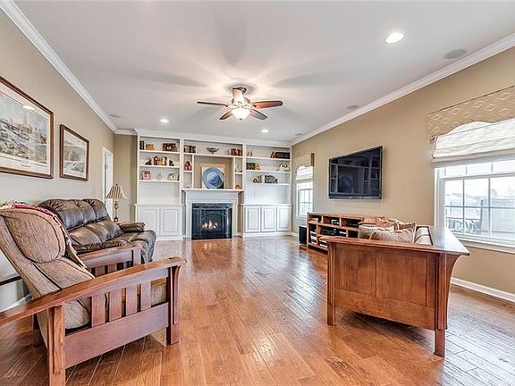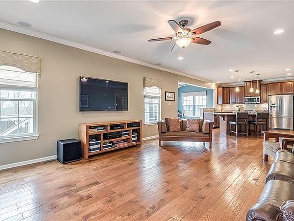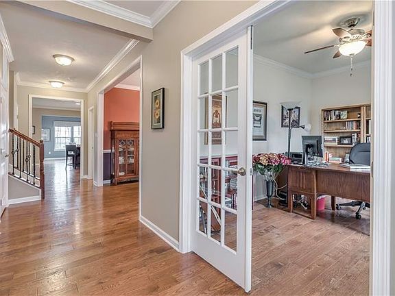 The wow factor is here! This home features an open floor plan with 9 foot ceilings and gorgeous hardwood throughout, a 1st floor study, a formal dining room, and a mudroom off of the 3 car garage that will be your favorite catch-all with room for storage/benches/shelving! The family room, open to the kitchen, has a fireplace surrounded by a wall of custom cabinetry and open shelving. The gourmet kitchen offers a huge island with pendant lights, double walk-in pantries and granite counters! The bright morning room features a vaulted ceiling and glass doors leading to the 21x16 deck with stairs to the park-like level yard! The owner's suite with a tray ceiling and fan will be your getaway with room for lounging, 2 walk-in-closets, one complete with California Style closet shelving, a private bath with double sinks, an oversized shower, linen closet and a water closet! A flexible room that is surrounded by guest rooms, one with its own private bath, and a laundry room complete the second floor. The lower level is plumbed for a wet bar and has huge glass doors to the patio and back yard. There is an exercise room on the lower level, that could be a 5th bedroom, with a full bath steps away along with a 26x19 storage room with 20-amp service. There is cable/internet wiring for every room plus the deck and the patio area, and surround speakers everywhere!