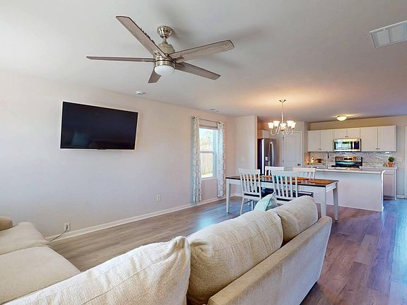 So many UPGRADES were added to this home once it was completed in 2022: LVP flooring, interior paint, half-bath vanity, ceiling fans, carpet in the bedrooms and stairs, tiled kitchen backsplash, farmhouse sink, microwave with vented hood, stainless steel refrigerator (included), backyard privacy fence, back deck off of the kitchen, bluetooth fan/light in master bath, remote garage door opener, and contemporary finishes throughout! There's even more to see for yourself!