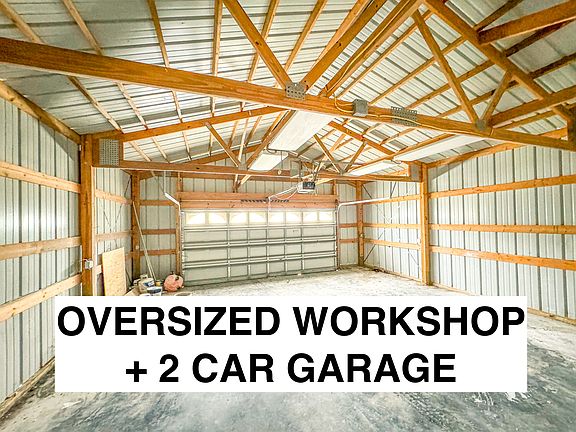 One of the standout features of this home is the incredible garage and workshop space. In the back, you'll find a two-car garage with an attached small workshop perfect for projects or extra storage.