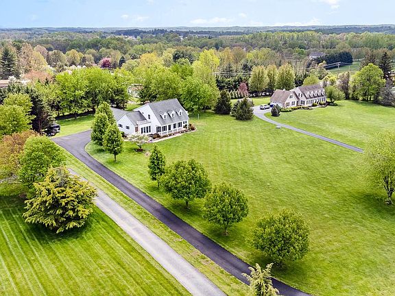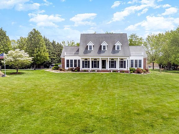 Captivating Custom Cape Cod in the Country on a cul-de-sac!! Full front porch, 9 ft ceilings, wood floors, spacious kitchen with granite and breakfast area! Family room with wood burning fireplace and two sets of sliders to the deck. There is a spacious first floor primary bedroom suite and a 2nd primary suite on the second level! Bedrooms three and four have a Jack and Jill bath! Finished lower level has a large recreation area, powder room (shower needs to be finished) , two flex space rooms, one currently outfitted for a bedroom. Ample storage, a 3 car garage, spacious deck and tree lined back yard round out this beautiful property. New HVAC & Water heater, beautiful nature light throughout. Beautiful setting, curb appeal and space!