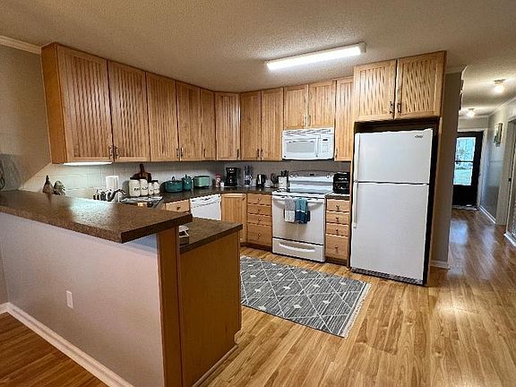 WOW, this is a beautiful condo! First floor, end unit, two bedrooms, two bath, in a very peaceful setting. Park like view in front of the building, and beautiful pond view behind the property. Laminate floors, fresh paint, wall decorations stay along with washer/dryer and kitchen appliances. 11.5 x 4.5 storage off kitchen area with a closet off of the storage area. Could be used for office space. Gorgeous kitchen with tons of storage space, lazy Susan, build in trash bin, tile backsplash. Great for entertaining with a breakfast bar adjoining the dining area. Second bedroom has a pond view with water fountain. Blackout curtains throughout, and lovely upgrades all around. Two sets of sliders out to a large 24 x 5.2 deck. Low monthly HOA fee and OWNER CAN HAVE A GOLF CART! Nice private side yard to enjoy the outdoors. Owner would consider selling furnished. Absolutely beautiful, great for a vacation home or full-time residence. Close to all area attractions, shopping, and the airport. Come and see today!