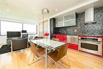 This tastefully renovated studio is a must see and includes many custom designed features. The kitchen's thoughtful design showcases custom cabinetry with stainless steel, top-of-the-line European appliances, including a stackable in-unit washer and dryer. The combination bedroom/living area includes a Murphy bed, which folds neatly away to accommodate guests when entertaining and a large, professionally designed closet allows for neat storage of shoes and personal wardrobe. The bathroom is a showstopper with its spa-like design and quality with a stand-alone tiled shower that includes multiple shower heads. Other features include bamboo floors throughout and central A/C. Utilities included in rent are heat, hot water, A/C, and deeded off-street and gated parking. Unit is located in an elevator building with 24 hr concierge, a heated indoor pool, and small equipment gym. No pets allowed in unit or building per condo by-laws. First month's rent, security deposit, and a broker fee, all equivalent to one month's rent due by lease signing.