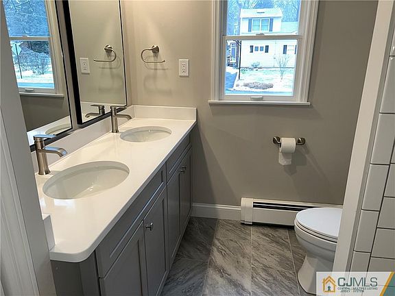 Beautifully renovated Ranch, ready for you to call "Home". A new paver walkway leads you to a covered front porch. As you enter the foyer, you can see how bright and light the home is. A new kitchen with recessed lights, new cabinets with under the cabinet lighting and quartz countertops. Stainless Steel microwave, stove, dishwasher and refrigerator and a large eat in area, plus a door to the back yard. The laundry area has a new utility sink and laundry and exhaust hook ups. The bright Living Room/Dining Room combination features a wood burning fireplace with build in bookcases and recessed lighting. The bedrooms all have recessed lights and double closets. A full bath, renovated with double sinks, quartz countertops, and all new fixtures, plus a double linen closet. All new vinyl plank flooring, moldings, lighting, paint, kitchen and bath. Attic access from pull down stairs in the hallway. There is another attic access in the garage, which is oversized, and has a door to the back yard. All outlets and switches have been replaced. New gutters installed. The shed is "as is". Realtors please confirm with PSEG that there is a gas line at the street