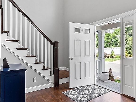 Outstanding 5 yr. young custom-built colonial w/ the ultimate open floor plan for today's family lifestyle. Impressive GREAT ROOM that spills into the kitchen & dining area. Great rm offers a gas fireplace, built-in shelving & storage that opens to the kitchen with a 10 ft island w/ pendant lighting. Kitchen also includes quartz counters w/accented tile black-splash, Thermador SS appliances w/ double ovens & wine/beverage refrigerator. Nice dining area for more formal meals w/ a sliding door to exterior deck. Mud room area w/ built in cubby for coats & 1/2 bath. Dream away in the spectacular main bedroom w/ gas fireplace, walk-in closet & bath w/ double sink quartz vanities. Convenient laundry rm on 2nd level & full bath. Future expansion possibilities in the basement with 12' ceilings. Amazing composite 30' deck that overlooks a LUSH yd prof. landscaped, irrigation & added trees for privacy. Two car heated garage w/13" ceiling height, HW floors & crown molding throughout & CA