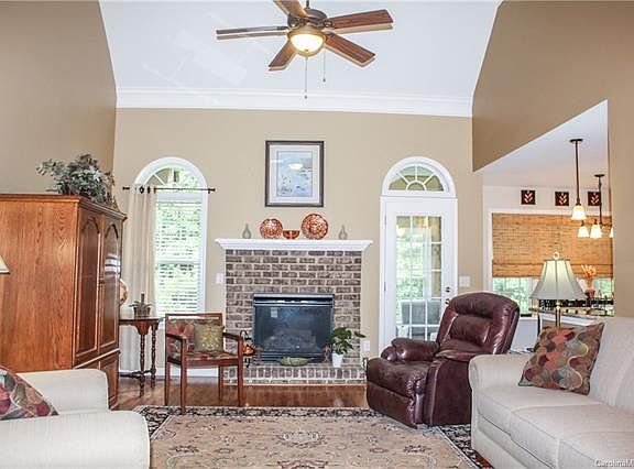 Beautiful full brick ranch home in sought after neighborhood The Woodlands. Open, split bedroom plan with a Meticulously maintained, neutral colors, hardwoods in main living areas, & Bedrooms, tile in bathrooms. Spacious kitchen with granite counters & Marmoleum flooring. A Gas fireplace with brick surrounds in the two-story great room. Master Bedroom has tray ceiling, large ensuite with soaking tub, and walk-in closet. Enjoy the Sunroom overlooking the backyard. Step down to the paver patio, perfect for entertaining. The fenced back yard is private backing up to woods and a stream, plenty of room for gardens and playtime. Home is located close to schools, shopping, and parks. Tankless Water Heater. Please Wear Masks. Walking trail to nearby Bellingham Park. Sought after Mooresville Graded Schools.