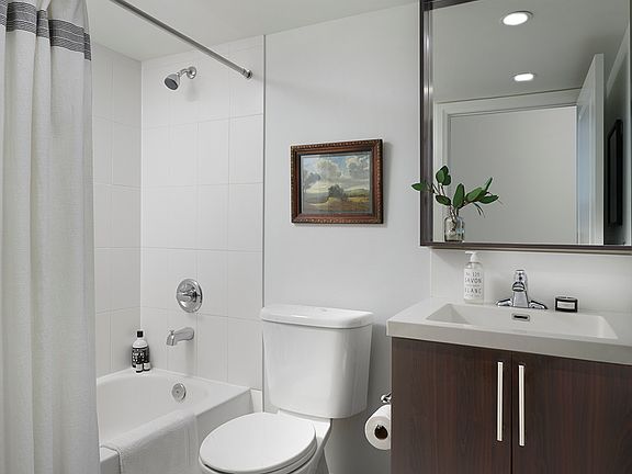 SUITE FEATURES: Neutral off-white latex painted suites Balconies* and terrace area(s)* and private patio(s)* with exterior electrical receptacle All suites are high speed internet ready for multiple service providers Pre-wired cable outlet in living room, bedroom(s), den* and media area* Low-E coated, argon gas filled, thermal double pane operable awning windows Designer window coverings in all suites Premium porcelain floor and wall tiles in all bathrooms Stacked white Frigidaire ENERGY STAR high efficiency front loading washer and dryer Plank laminate flooring throughout Mirrored sliding closets in all suites Brushed metal door hardware BUILDING FEATURES: Private courtyard 24 hour monitored and gated underground parking Concierge Complementary WiFi throughout the main floor Lounge with flat screen televisions and wet bar Business Centre pre-wired with flat screen television Plush screening theatre with complementary Netflix Fully equipped Fitness Centre Complementary access to Club Hampton** Complementary fitness classes Call OR email for more information or to schedule a viewing!
