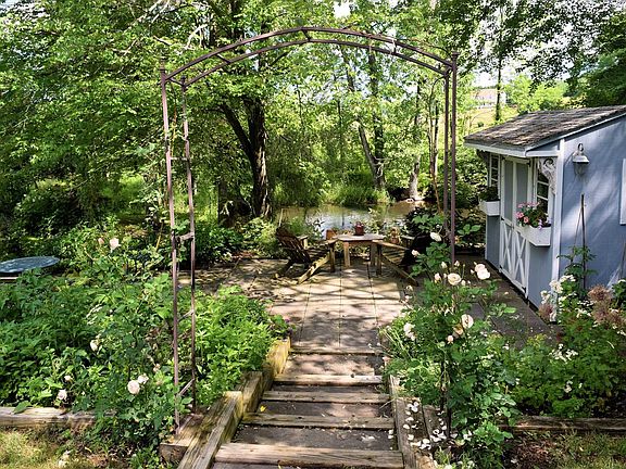 This Historic 1840's Red Hook Schoolhouse is located on the banks of the Saw Kill tributary. The 2.3 acre property meanders along the Saw Kill creek with lovely landscaped perennial flower gardens, mature trees, a large stone patio (over looking creek) and a potting shed. Swim in the creek swimming hole or fish for trout. The schoolhouse has been converted into a very special residence. Featuring a large living room with 12 foot beamed ceilings w/fireplace, 2 bedrooms, 1.5 bathrooms, a large dining room and family room addition, kitchen, laundry, wood floors, new septic system and a 1 car garage. This home exudes charm and comfort. First time on the market in 35 years. A perfect country weekend retreat or full time home. Minutes from both Rhinebeck & Red Hook village and Bard college. A must see to appreciate.