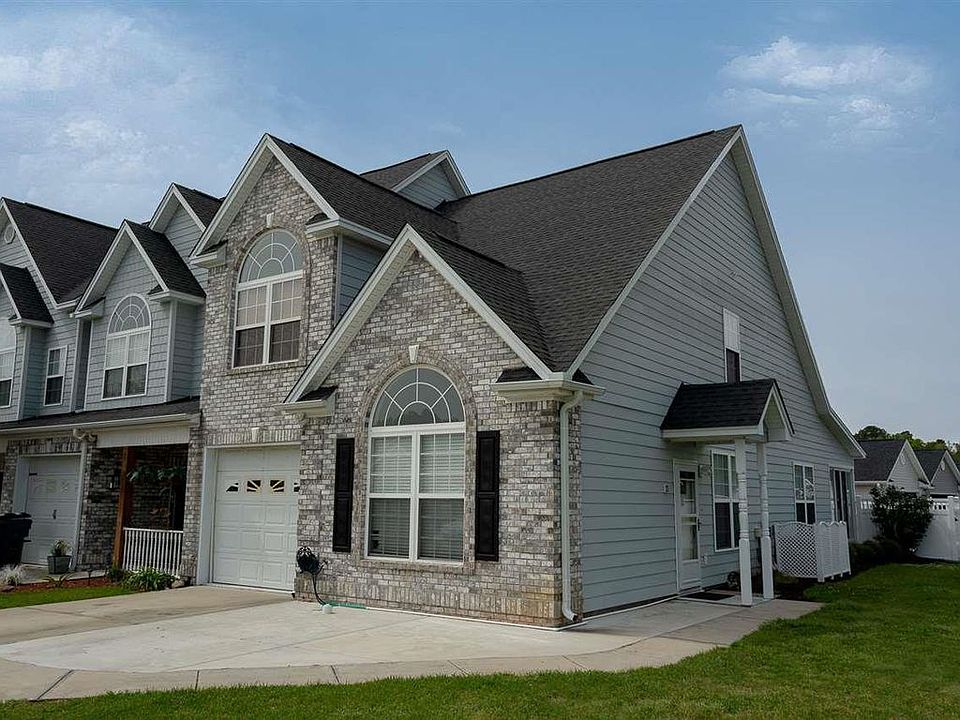 Wow is what you'll say when you enter this lovely, turn key furnished, Town Home with main floor master bedroom. From the moment you enter the custom front door with keyless entry, you will be wowed. The flooring is exotic solid Brazilian hardwood throughout the main level, with ceramic tile in the baths. The kitchen has 42" custom maple cabinetry with granite counters and stainless appliances. The owner has installed custom wainscoting in the main living/dining/kitchen area, and there is crown molding throughout the home, including all bedrooms. There are upgraded light fixtures and door hardware throughout the home. The screen patio was converted to a 3 season Carolina Room with custom stamped concrete flooring, flowing to the fully fenced, low maintenance back yard with the same stamped concrete. The master bath has been upgrade with a large tile shower and granite counters. The master has a custom fitted closet large enough for everything you own. The downstairs powder room is large and conveniently located past the laundry area in it's own hallway. Upstairs are two bedrooms, both with customized closet systems and another full bath with granite counters and tile flooring. The carpet is upgraded as well. One of the bedrooms is double sized, big enough for a king bed with enough room left over for a sitting area. The second bedroom is currently used as an office/craft room, but also very spacious, easily accommodating a queen bed. The community has a brand new pool just steps from your door. The driveway and walkways have been expanded to allowing parking for 4 cars in addition to the one car attached garage. You can't go wrong with this home. Not only does it have everything you could want in upgrades it's only minutes from Market Common and the Beach, with all the shopping and entertainment Myrtle Beach has to offer near by. All square footage is approximate and not guaranteed. Buyer is responsible for verification.