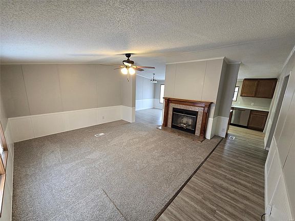 This freshly updated 3 bedroom 2 bath home sits on a completely fenced 1/4 acre lot. New kitchen cabinets with ample storage, new counter tops and updated appliances. The vaulted ceilings, wood burning fireplace and new carpeting give you a new home feeling. All bedrooms offer walk in closets, new ceiling fans and updated lighting through out. The spacious primary bedroom features a private en suite bath, custom built in closet, new luxury vinyl and carpet. The low maintenance back yard offers a large deck, privacy fence and in ground storm cellar. This home offers quiet small town living with close conveniences in Edwardsville School District. New furnace, AC, water heater and additional insulation updated in 2023. Realtor owned.