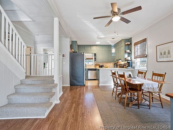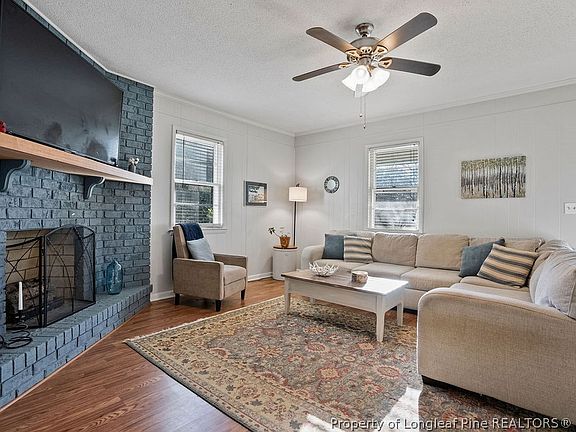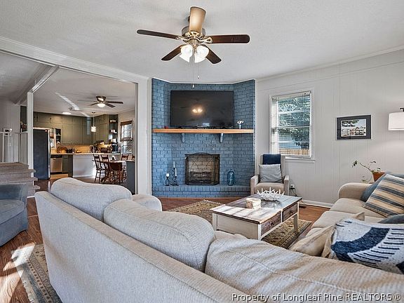 Beautifully updated 4 bedroom , 2 bath home in the quiet Erwin Mills subdivision! Enjoy the gorgeous Chinese cherry blossom trees when sitting on the large covered front porch. Upon entering, you will find an open concept living room with corner fireplace, dining room and kitchen with stainless steel appliances. To left is a large flex space that would be great as an office, playroom , etc! Primary bedroom downstairs with shared full bathroom. Through the laundry room to the back yard you will find a great entertaining space! Large covered area with outdoor kitchen that includes grill, flat top , pizza oven , mini fridge and sitting area! Above ground pool is included! There's also a great workshop and metal shed , both wired! Upstairs you will find 3 additional rooins with one bathroom. Laminate and carpet floors downstairs. Primary downstair bedroom has been updated with laminate. About a 5 min drive to the Cape Fear River Trail Park.