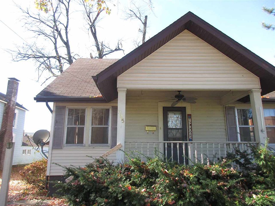 Bungalow style home with front porch and 1 car detached garage. Interior consists of 2 bedrooms, 1 bathroom, Living room, kitchen and full unfinished basement.