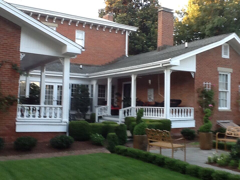 Southern charm abounds this home inside & out! Wide plank wood floors throughout. Master bedroom on main floor with huge bath. Two bedrooms up-each with its own full bath. Spacious foyer with beautiful winding stairway to upstairs. Three full baths plus half bath. Covered porches off back over-looking courtyard, brick walks and gardens. Detached 3-bay garage with bonus room/guest room with kitchenette and full bath!