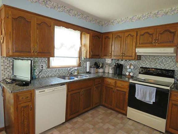 Beautiful home located in a cul-de-sac. The entire yard is nicely decorated and surrounding the house; the homes deck is covered and perfect for entertaining. Large kitchen with a pantry, desk, hardwood floors, central vacuum and utility room off the kitchen. The master bedroom contains a sitting room that connects to the master bath. The home has gorgeous vaulted ceilings and the basement is stubbed for finishing.