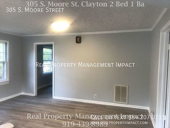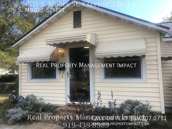 This charming home has been fully renovated with luxury wood laminate floors, fresh paint, modern matte black light fixtures, updated bathroom & kitchen with modern farmhouse fixtures. Spacious family/living room is full of natural light. Large bedroom features original ornate molding around closet and large built storage space. Second bedroom/flex space can be used as a home office. Eat in, retro black & white kitchen has ample counter space and cabinets. Separate laundry room has entry to a large private backyard - perfect for grilling or gardening. Make this bungalow your home! Conveniently located to local favorites: Deep River Brewing Co (.2 miles), Main Street Shops & Restaurants (1 mile), Clayton River Walk (3.1 miles), InStill Distilling Co (.2 miles), Pine Hollow Golf Course (3 miles), Bailey & Sarah Williamson Nature Preserve (6.5 miles), and Raleigh (16.3 miles) Application Criteria Credit Score Min 600 (soft pull) Income (monthly) 3X Monthly Rent Everyone over 18 must apply ($55 application fee applies to all applicants) No Evictions Criminal Background Screened If pets are allowed separate pet screening is required. All information provided on the application is screened and verified. Approval timeline varies based on the verification process. Average = 48 hours. AVOID RENTAL SCAMS: Real Property Management Impact is a licensed Real Estate Agency that exclusively markets and represents this listing. We do not advertise on Craigslist or Personal FB Pages. We would never ask you to wire money, request funds through a payment app for initial rent, deposits, or take the key after your showing to move-in.