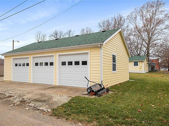 Remodeled ranch on a corner lot! This 3 bedroom 2 bath home has a beautiful brand new kitchen!! The remodel also features a master bedroom with an en-suite master bathroom. The large living room has a wood burning fireplace. When you walk into the unfinished basement it is a like a whole other house, very clean and open. The lawn is immaculate and very well manicured and grading work was complete. One of the highlights is the detached 3 car garage with an additional storage or workshop space. There is also a driveway that goes all the way to the alley so you can pull all the way through giving you plenty of extra parking! So much new, new A/C in 2020, new Furnace in 2018, new roof on garage and house in 2019, new stainless steel liner for fireplace and new fireplace insert and new chimney, new cement facia on house and garage, new soffit, siding and windows on house and garage, new flooring throughout, new paint inside and out, new exterior doors, new porch, 2nd bath was also remodeled, insulated garage doors.