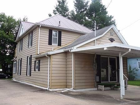 Home has been owned by the same owner for 39 years. Has been used as a duplex recently. Can either be a single family with 4 bedrooms and 2 baths or two units each with 2 bedrooms and a bath. Covered patio in the rear and very nice garage. Home has combination storms and screens and a great bow window in the front. Newer metal roof. Two kitchens. Large living room and dining room combination on lower level. Lots of storeage and closet space. This is a must see. Electrical has been upgraded also.