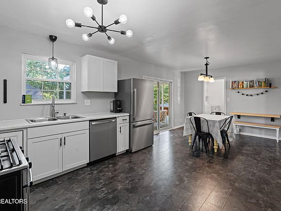 Inside, you'll find original hardwood floors that flow through the main living areas. The floor plan includes a spacious living room, an open concept kitchen/dining room combo featuring a recently remodeled kitchen, laundry room, sunroom, and a sizeable 1-car carport. Recent upgrades include a brand-new roof and a new water heater, ensuring peace of mind for years to come.