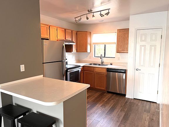 Located on a wide tree-lined street, less than a mile from downtown Prescott's historic courthouse square, and one block east of Mt Vernon, this upper rear apt is light and bright. Building is set back from street and It has a private deck and stairs that are exclusive to this unit. It has new floors and a new central heat and AC! It has also been painted, has new window coverings, new fans and light fixtures, new kitchen sink, bathroom sink, and all new plumbing fixtures, new toilet and new water heater. This apartment is very clean and ready for you to move-in. 4 units total in building. In the hills adjacent to Acker Park, there are trails behind the building that go into a beautiful 80 acre nature park in the heart of Prescott. Rent includes city tax which owner pays city on tenant's behalf. Owner also pays water, sewer, and trash. Sorry no pets. Non-smoking property. One designated parking spot in covered carport in front of building and plenty of street parking without restrictions. Please use Zillow messenger to set up an appointment. Easy to show. Taking applications through Zillow as well. Exterior building newly painted grey with white trim. One year lease. Owner pays, water, trash, (inc recycling) and sewer. The Prescott city tax is included in the rent and paid to the city on the tenant's behalf. Tenant is responsible for gas and electric. No smoking on property.
