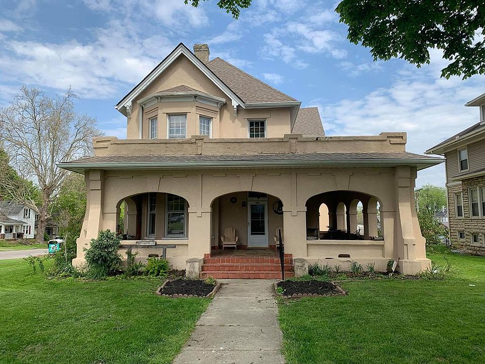 Gorgeous home with loads of original character and charm throughout it. Hardwood floors and beautiful dark wood trim throughout. It lends itself to craftsman charm while the outside reflects a bit of the Victorian and Mission style with the large spacious stucco & tile porch that is a relaxing place to sit on hot summer evenings, beautiful bay windows accentuate the north side of the home. It's a perfect mix of the different styles in a beautiful historical home. Large almost half acre lot with a carriage house that has it's own charm that could be finished into a studio space. Large spacious rooms throughout this house with many bathrooms that have all been updated. Great location walking distance to downtown Greenfield. Updated kitchen with granite counter tops & lots of natural light. Original fireplaces add even more character to the home. This property was operated as a bed & breakfast for many years and is ready to entertain again. This house is a must see! Measurements estimated