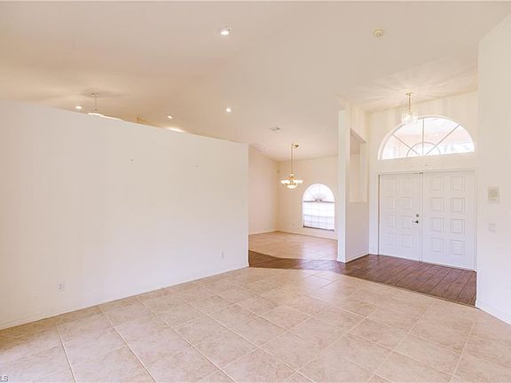 If you are looking for a spacious home in central Cape Coral with water assessments in and paid this is your home!! One owner home built in 2002 with just a tad under 2,300 living square feet! Double door screened in entry which opens up into an all tiled spacious formal living dining area with volume ceilings. To the left is an oversized master bedroom with two walk in closets, separate tub/shower, double sinks. French doors lead out to your screened in lanai. The kitchen in this home is a great size featuring tons of cabinet and countertop space along with a walk in pantry! The informal living area is huge with multiple windows/sliders that allows plenty of natural light to come into the space! 2 nice size guest bedrooms. Oversized laundry room with wash tub. A/C system was replaced in 2014. Manual storm shutters for entire home. The back yard is fenced in, lush lawn with sprinkler system and you will LOVE the royal palms that surround the home providing an upscale look in this fantastic waterfront neighborhood! There is an exterior pool bath already in place at the rear of the home for your new future pool! Excellent location and close to all major shopping and dining!