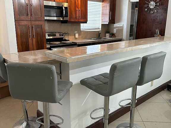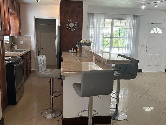 4 bedroom 2 bath single-family home in Hallandale Beach, FL. Property features a large living room, dining area and den plus stunning custom solid-wood kitchen and modern stainless-steel appliances. Ceramic tile throughout the property. Large backyard with deck space. Amenities include oversized backyard, washer and dryer and covered carport with direct kitchen access. Large driveway and covered carport allow for 5 private parking spaces. Tenant to reimburse landlord for water. Tenant responsible for all utilities, landscaping and pest control services if necessary.