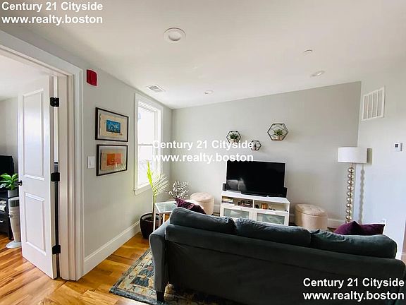 Open kitchen and living room layout with high ceilings and a fenced-in back yard. The kitchen features modern cabinetry and stainless steal appliances. Both bedrooms include well-sized closets. Washer/Dryer located inside the unit as well as central air -conditioning, forced hot air and hardwood floors throughout. Airport T stop a couple blocks away - two stops on the newly renovated blue line to the North End, three stops to State Street. Walking distance to Piers Park and Maverick. Airport T stop offers a 24 hour FREE airport shuttle to all major airlines. Grocery, shopping, gyms/yoga studio/CrossFit and restaurants (Reel House, Rino's, Angelas) all within a few blocks of your front door. First Month Rent, Security Deposit, and brokers fee due at signing. Tenant pays utilities. Pets negotiable.
