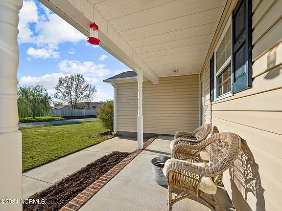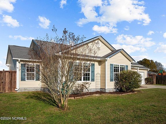 PRICED TO SELL!!! Welcome to this serene retreat in Pebble Grove —a small, tranquil community nestled in a picturesque country setting just 25 minutes outside of Jacksonville. As you approach the house, you're greeted by a rocking-chair front porch, inviting you to sit back and enjoy the surroundings. A two-car garage provides ample parking and storage space. Step inside to discover a welcoming foyer that leads you into the spacious living and dining area adorned with a cozy fireplace, vaulted ceilings, and sliding glass doors that lead out to a pergola covered deck — creating the ideal atmosphere for gatherings with family and friends. The kitchen seamlessly connects to the dining area, making entertaining a breeze. The primary bedroom features a generous walk-in closet and an ensuite bathroom complete with a dual sink vanity, providing both luxury and practicality. Two additional bedrooms offer versatility and comfort, ideal for family members or guests, while another full bathroom ensures convenience for all. Outside, the property boasts a fenced-in backyard, providing privacy and security for outdoor activities and relaxation. A shed and playset add further utility and enjoyment to the outdoor space. Don't miss your chance to make this idyllic retreat your own haven in Richlands, NC.