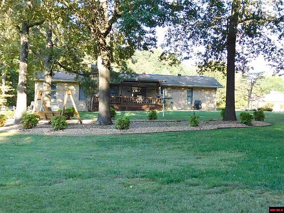 Move in ready is this 3 BR 2 BA home sitting almost 1 acre m/l of level land. Have coffee on your covered deck & enjoy beautiful surroundings, along w/peace & quiet this home offers. Brick exterior, split floorplan, walk-in closet, updated kitchen, wood fireplace, cement driveway & new roof Oct. 2019. Home is on city water but there is a well for watering the yard & beautiful landscaping around the property. This 2 car garage is full of cabinets. Bull Shoals Lake is close by.