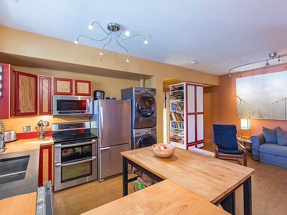 This completely upgraded and free market Lawson condo has tall ceilings and wonderful natural light. At 555sf, this 1 bedroom unit is move-in ready and features easy ground floor living, a south facing deck, and a deeded parking spot right out your door. The warm cork flooring and stainless steel appliances give the unit a bright and clean Scandinavian feel. Tired of paying rent, this is your answer! Very low HOA dues and no Deed Restriction.