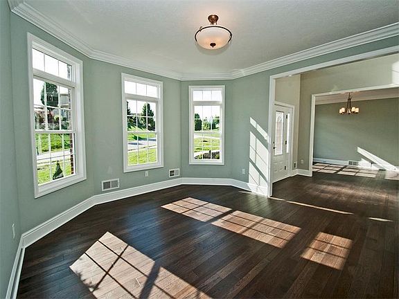 All the bells and whistles. 2 st. entry open to LR & DR. Large 3 story great room with coffered ceiling & stone fireplace. Opens to gourmet kitchen with white cabinets and gray island with hard surface counters. SS kitchen Aid appliances: five burner gas stove, French door ref. etc. recessed lights, crown molding and large walk-in pantry. First floor den that can be used as a fifth bedroom, has access to full bath. Master is massive with double tray ceiling & crown with spa like bath and huge walk-in closet (19x14) The other three bedrooms have vaulted ceilings, recessed lights, ample closet space & one has its own bath other is jack n jill Covered no maintenance rear porch overlooking big yard. Large lower level with windows and door to yard, plumbed for bath. Most of the first floor has hardwood, 3 car attached garage and main floor laundry with access to the side yard.