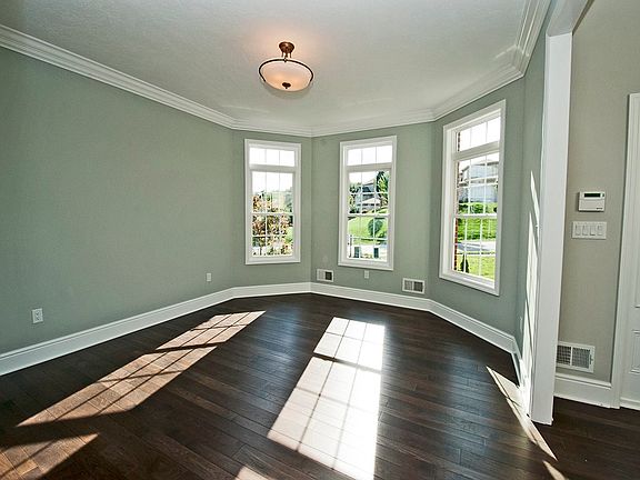 All the bells and whistles. 2 st. entry open to LR & DR. Large 3 story great room with coffered ceiling & stone fireplace. Opens to gourmet kitchen with white cabinets and gray island with hard surface counters. SS kitchen Aid appliances: five burner gas stove, French door ref. etc. recessed lights, crown molding and large walk-in pantry. First floor den that can be used as a fifth bedroom, has access to full bath. Master is massive with double tray ceiling & crown with spa like bath and huge walk-in closet (19x14) The other three bedrooms have vaulted ceilings, recessed lights, ample closet space & one has its own bath other is jack n jill Covered no maintenance rear porch overlooking big yard. Large lower level with windows and door to yard, plumbed for bath. Most of the first floor has hardwood, 3 car attached garage and main floor laundry with access to the side yard.