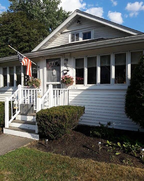 Tired of all the stairs? This 3 bedroom home is all on one level. Spacious master with cathedral ceiling. Enter through the 4 season porch into the open living area. The Living room leads to the dining room and kitchen. Enclosed 22x8, heated front porch, is great for sitting and enjoying the sunlight and the fresh air. The 10x7 back porch leads to a composite deck surrounding the above ground pool. One driveway leads to the detached, 1 car garage and the other is a circular drive in the front of the house. New roof and furnace installed approx. 2012