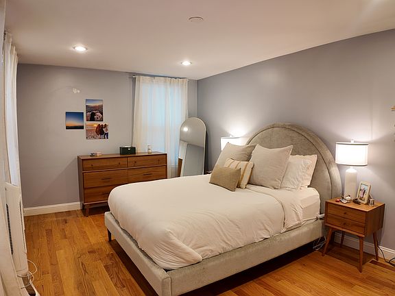 Gardeners and pet lovers welcome home! This rare Jeffries Point gem offers the best of East Boston living with direct walk-out access to a shared deck and your own deeded private yard perfect for relaxing, entertaining, or letting pets roam free. Inside, the thoughtfully renovated 2 bed / 1 bath condo blends charm and functionality. Enjoy an open-concept layout with a gas stove, stainless steel appliances, solid surface counters, and a brick accent wall with built-in shelving. The spacious primary bedroom fits a king and overlooks the yard, while the second bedroom is bright and versatile ideal as an office, nursery, or guest room. Additional features include hardwood floors, central A/C, in-unit laundry, and a stylish full bath with custom tile. A private staircase leads to 250+ sq. ft. of bonus lower-level space perfect for a gym, studio, or extra storage space. All of this just two blocks from the Blue Line, Greenway, and Piers Park, and moments from neighborhood favorites like the Shipyard, waterfront, local restaurants, and shops. One stop to downtown via train or ferry city living doesn't get better than this. Owner pays for water, sewer, and trash pick up. The tenant is responsible for gas, electric, and wifi in addition to yard maintenance and snow removal.