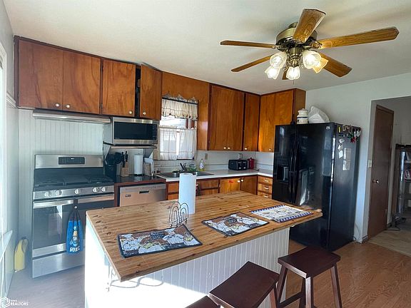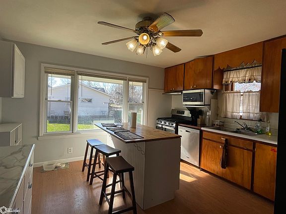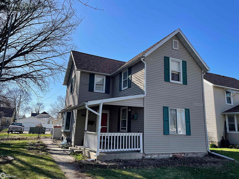 This is a four bedroom home with two full bathrooms in small town West Burlington. Main floor living is available in this home that has a bedroom and full bathroom on the main level. The kitchen has appliances that will stay and an island with cabinets underneath for additional storage space. There is a formal dining room area that opens to the living room. Upstairs are three good sized bedrooms and a full bathroom. The backyard is fenced in. The three car garage has a two car door with a workspace or area to pull in a third car. The garage is heated and cooled. There is a covered front porch where you can enjoy your morning beverage while you scroll through daily news. This home is located within walking distances to the schools. It is centrally located to the hospital, shopping, restaurants, as well as the freeway.