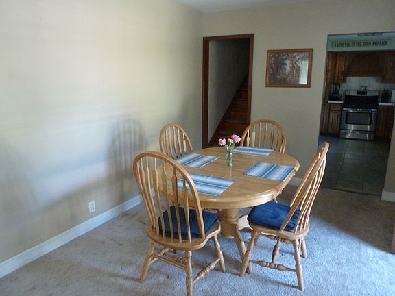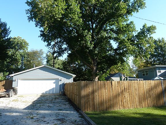 Two story home, on a corner of two lots. There are 3 bedrooms, a full basement, 3 garages. Nice galley kitchen, large L shape living room/dining room all open. Nice carpeting throughout, with original hardwood flooring if you prefer wood flooring. There is a one car attached garage, a two car detached garage & a one car garage. Nice deck, large yard completely fenced in with a privacy fence.