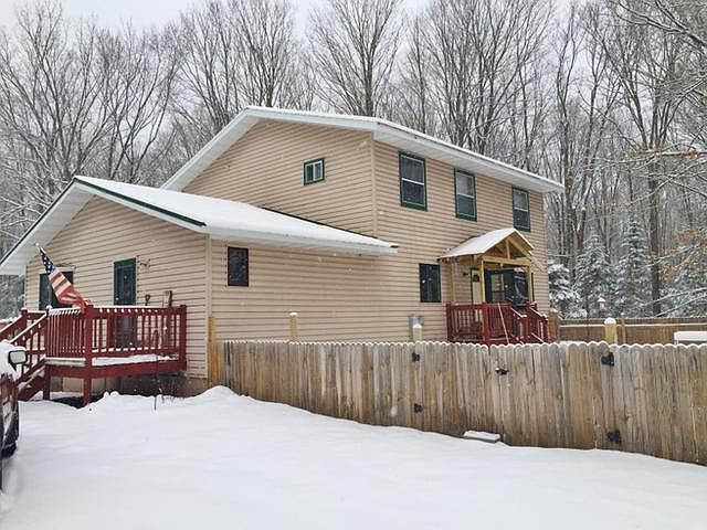 Country living at its best!! This maintenance free 3 bedroom, 2 bath home is on 4+ wooded acres just far enough out of town to be quiet and full of wildlife. Features include a large master suite with large walk-in closet, open concept kitchen, dining room, large deck and fenced in yard, great for dogs or kids. Easy access to the Three Eagle Hiking/Biking Trail that runs between Eagle River and Three Lakes. Close to all area recreation too. Priced to sell!! See it today!!