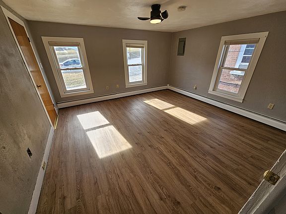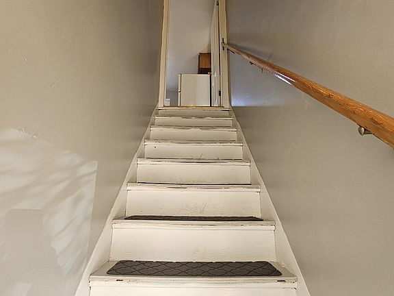 Upstairs two-bedroom apartment. Freshly painted, new luxury vinyl plank in bedroom. Washer and dryer hookups being installed this week (2/5/2025). One off-street parking space. Spayed or neutered cats welcome. No dogs sorry. No smoking. Utilities not included in rent.