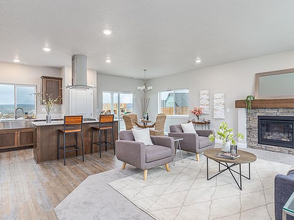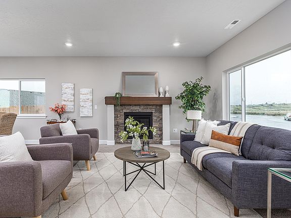 The Douglas features a dynamic two-story layout with 4 bedrooms and 3 full bathrooms, all encompassed in 2,427 SQFT of living space. Highlights include a deluxe chef's kitchen with quartz counters, island, and five burner stainless air-fry convection gas range and luxurious primary suite with freestanding soaking tub, shower, and large walk-in closet. Additional features consist of a main level guest suite/den, comfortable great room with gas fireplace, spacious loft, 95% high efficiency gas forced air heating, and covered patio. Built by award-winning builder MonteVista Homes.