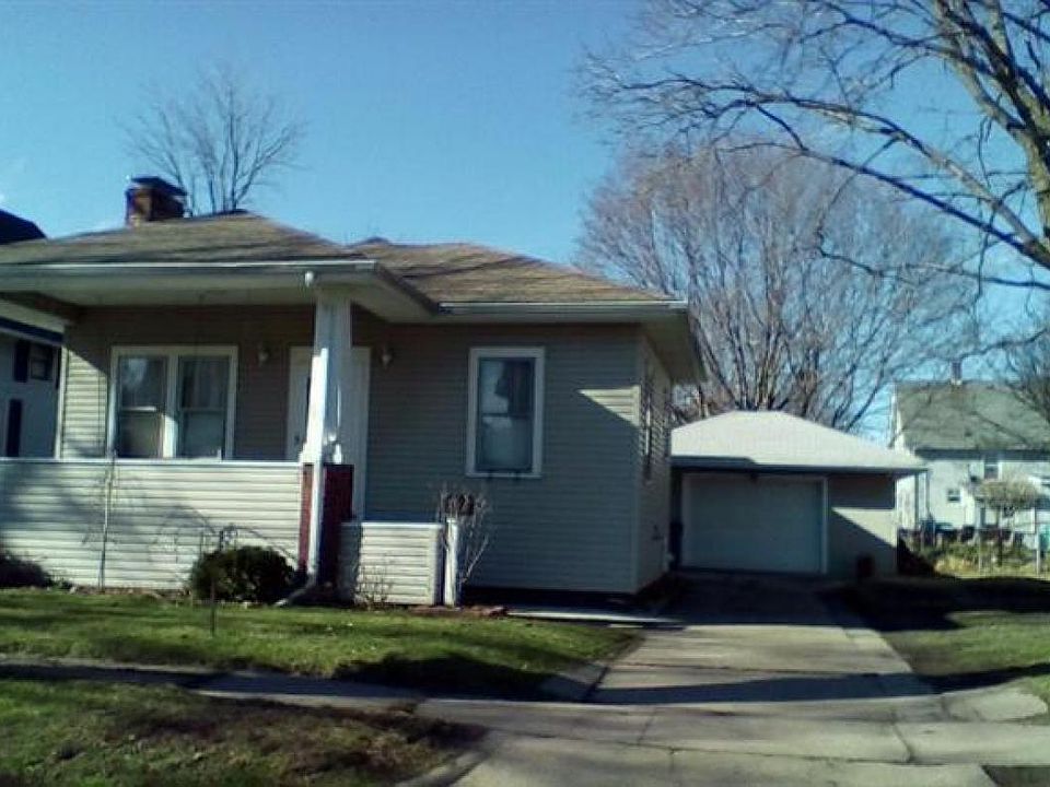 Darling 2 bedroom bungalow with living room with new carpeting and with fireplace surrounded by bookshelves with glass doors..all natural woodwork. Dining room with new laminate floor. Kitchen offers lots of cabinets and full basement and 1 car det. garage. fenced yard.