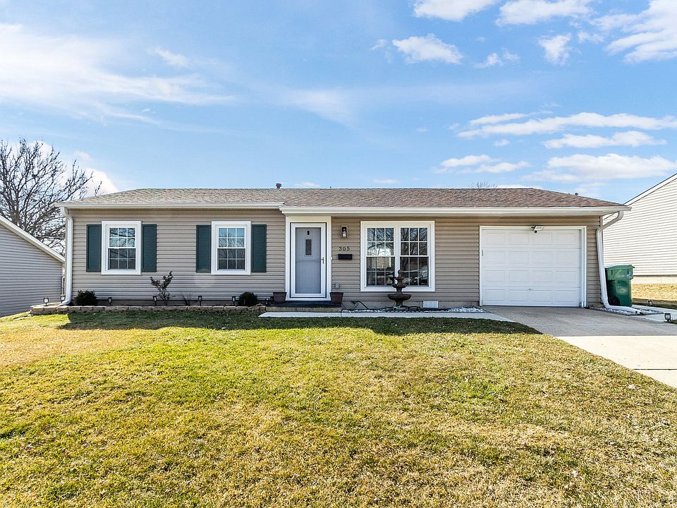 Motivated seller! Move-in ready 3 bedroom, 1 bath home with numerous updates throughout. Refreshed interior has been thoughtfully renovated. From the sleek kitchen to the inviting living space, every space has a fresh appeal. Outside, your fenced yard provides a private retreat for outdoor activities or simply unwind in the hot tub. This home presents an ideal opportunity for those seeking comfort and convenience in a move-in-ready package. Updates include vinyl siding 2021, windows, 2021, kitchen (including appliances) 2021, bathroom 2021, flooring 2021, privacy fence 2022, new insulation in attic 2022, concrete sidewalks and patio 2022, washer and dryer 2022, hot tub 2022, front storm door 2023, soffit and fascia painted 2023, new furnace 2023, garage drywalled, new opener and epoxy floor 2023.
