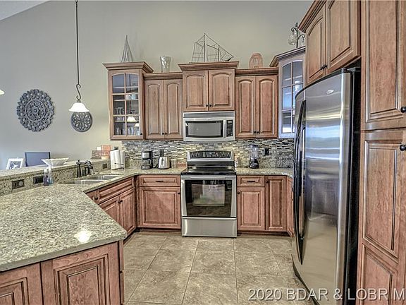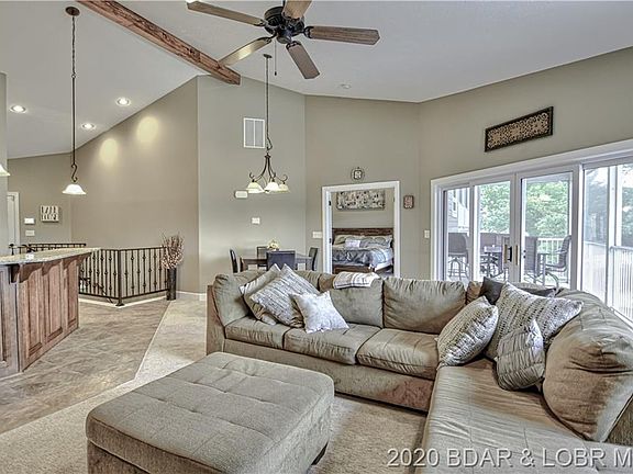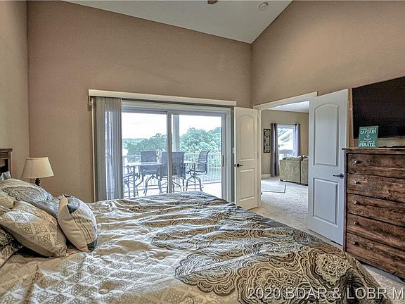 Four bedroom lakefront villa with a 14X40 foot boat slip just minutes away from the Bagnell Dam Strip. One of a kind 3 level townhome that features three "living areas", three and a half baths and an attached two car garage. The lower level provides a great game area, a 2nd master suite, a possible wine cellar, and gets you closer to the lake and pool. Spectacular views from both decks including a great view of the community pool and mile marker 1 of Lake of the Ozarks. Home comes completely furnished and shows great! The furniture is tasteful and the colors in the unit are pleasing. Top quality appointments include: a fireplace, wetbar, jetted tub, stainless appliances, quality cabinets, granite counters, a wet bar, beautiful tile floors and covered tiled decking. It is rare to find something like this at this price point and even more rare to find it within walking distance of the Bagnell Dam Strip. Boat slip can easily be modified back to a 16X44 foot cruiser slip!