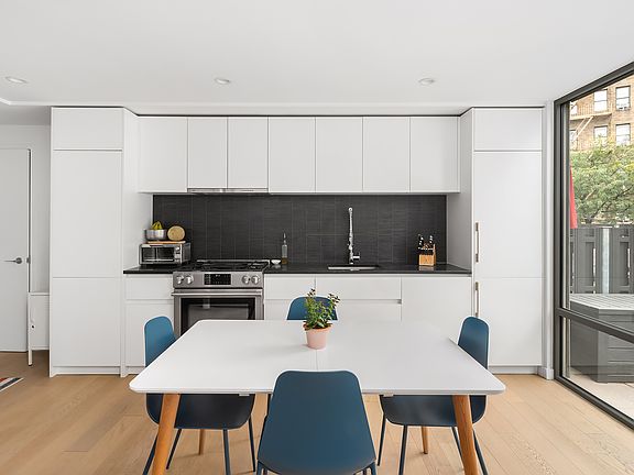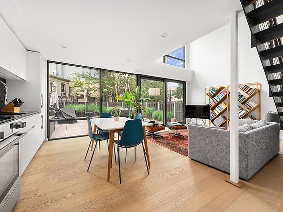 Rare one-bedroom, 1.5-bathroom duplex with excellent light and a huge private terrace (including a gas grill) in Williamsburg's UnionBK. Located in one of the neighborhood's hottest areas, UnionBK is a 19-residence building featuring quality modern design, exceptional light and air, and smart amenities, including a virtual doorman system with smartphone capability, gym, residents' lounge, bicycle storage, common roof space, and indoor garage. Residence 2B is an 861-square foot duplex one-bedroom/1.5-bathroom home with an enormous 579-square foot private terrace. Finishes throughout the home include rich oak flooring; high, steel-decked ceilings; floor-to-ceiling windows; and a double-height ceiling in the living and dining room. The terrace has a gas grill. The double-height living and dining room is excellent for entertaining. The chef's kitchen features custom Italian cabinetry with lots of storage, black Caesarstone countertops, full-size refrigerator, dishwasher, and a true-vented stove with XO fan. A powder room sits off of the home's entry foyer. The upper floor houses the bedroom and full bathroom, along with a separate closet with the washer/dryer. The bedroom is bright and pin-drop quiet. The full bathroom has a stylish standing shower. Both the full bathroom and powder room have Waterworks and Restoration Hardware fixtures. The home has a dual-zone Daikin central air system for heating and cooling. Located perfectly by the Grand and Lorimer Street corridors, UnionBK is surrounded by some of Williamsburg's favorite dining, shopping, and cultural amenities, as well as many greenspaces. The building is proximate to the Lorimer L, Metropolitan G (with entrance on Hope and Union), and Hewes J/M/Z subway stations. The building is pet-friendly. Pre-Lease Application Fees: Tenant Credit Check Fee (Non-Refundable): $20 per applicant Post-Lease Management and Condo Board Fees: Condo Board Application Processing Fee: $450 Consumer Report Fee: $100 Move-In Fee (Non-Refundable): $500