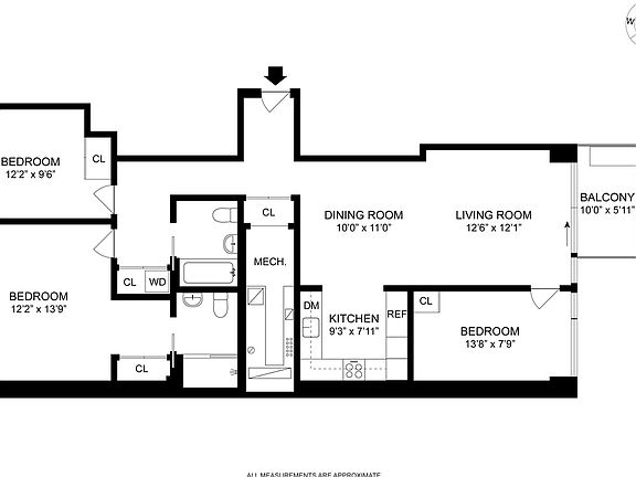 Large three-bedroom/two-bathroom home with private balcony, and excellent light and views in Williamsburg's UnionBK. Located in one of the neighborhood's hottest areas, UnionBK is a 19-residence building featuring quality modern design, exceptional light and air, and smart amenities, including a ButterflyMX system with smartphone capability, gym with Fitness on Demand, residents' lounge, cold storage, bicycle storage, and common roof space. Residence 5C is a 1,216-square foot three-bedroom/two-bathroom home with a large 59-square foot private balcony. The home enjoys its light and views from dual exposures: The living/dining room and third bedroom face northeast toward Union Avenue, and the primary and second bedrooms face southwest, with pin-drop quietness. Finishes throughout the home include high, steel-decked ceilings, floor-to-ceiling windows, and rich oak flooring. The open chef's kitchen features custom Italian cabinetry with lots of storage, black Caesarstone countertops, Bosch dishwasher, and a large cooking island with true-vented stove with XO fan. The living room/dining room is huge and can be used contiguously with the balcony. The primary bedroom suite is quite large, with two walk-in closets and a large en-suite bathroom with standing shower. The second bedroom and third bedrooms are both sizable with their own closets. The second bathroom has a tub. Both bathrooms have Waterworks and Restoration Hardware fixtures. The home has its own washer/dryer, as well as a multi-zone Daikin central air system. Located perfectly by the Grand and Lorimer Street corridors, UnionBK is surrounded by some of Williamsburg's favorite dining, shopping, and cultural amenities, as well as many greenspaces. The building is proximate to the Lorimer L, Metropolitan G (with entrance on Hope and Union), and Hewes J/M subway stations. Pet-friendly. Quick approval process.