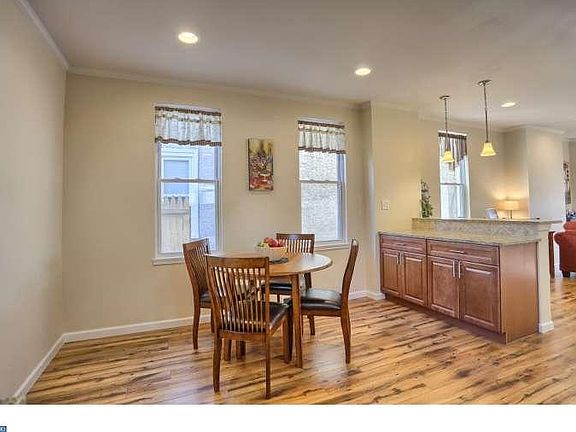 Move in ready and completely remodeled from top to bottom is this 4 bedroom single, conveniently located, walking distance to school, college and playground. Upon entering you will get the feel as though you are walking into new construction with high-end upgrades. Living room offers beautiful laminate flooring, recessed lighting and opens nicely into the 27 handle eat in kitchen which boasts granite countertops, tile back splash, stainless appliances and two tier breakfast bar. The second floor offers all new wall to wall carpeting in the three generous size bedrooms, all separate, none being walk through. Full bath has been completely remodeled offering new tiled shower, commode, vanity and fixtures. The third floor has a bonus 15 x 16 room which could be used as a 4th bedroom, playroom/game room. New replacement windows throughout. New Gas Heater & Central Air systems. Large double lot offers the ability to have off street parking if you wish. Covered back porch overlooks flat fenced yard. This home has so much to offer and will not last at this price. Call today to schedule your private showing! !