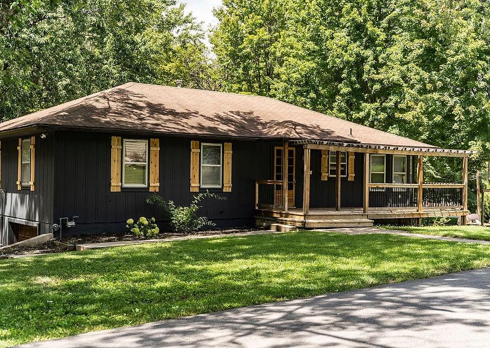 Raised ranch home provides single level living in a quiet Pleasant Hill neighborhood! Freshly painted exterior and new shutters create attractive curb appeal! Welcoming front porch features a pergola roof for plenty of shade. You are greeted by beautiful wood lined vaulted ceilings. Eat in kitchen has an adorable pantry and plenty of cabinet space! The eating area features a bay window for natural light! All appliances stay, including washer and dryer! Large living area with built in entertainment center. Generous sized bedrooms and updated bathrooms! Master bedroom has private access to the back deck! Fenced back yard featuring separate fenced areas for pets and huge multi-level deck backing to trees to provide a private outdoor living space perfect for entertaining!