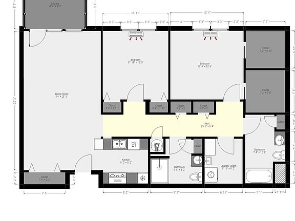 - Kitchen - Galley, Bathroom - Tub Shower, Walk-In Closet(s), Dry Wall