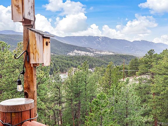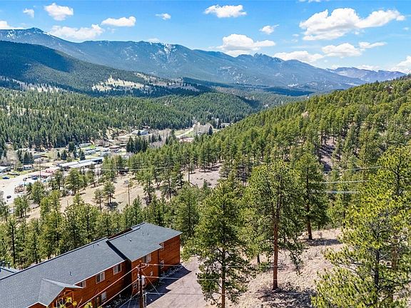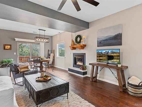 Vogue, modern LoDo finishes in the intimate mountain town of Bailey! This "hard to believe is a condo" end unit lives like a townhome, with no one above or below you, and is arguably as private as a detached single family home! Located at the very end of the building and complex, this southwest facing home is an incredible value offering privacy and solitude as it backs up to larger parcels. This view from a condo is unheard of and will get you as soon as you walk onto the deck. You will not want to leave until the sun sets so you can bask in the magical golden, orange and red sky light! Pervasive throughout the interior living space, the views are framed in every window. Within walking distance to the town of Bailey, you can experience delectable food and spirits at 2 Dad's Eatery and Taproom, The Smiling Pig, or the Cutthroat Cafe. Work up an appetite hiking directly across 285 on the McGraw Memorial Park or Brookside-McCurdy Trails, or go big on the multitude of trails in the surrounding National Forest. Enjoy the lively hummingbird show and birds nesting in your deck bird houses. Artfully painted with hip coordinating colors, tastefully finished, and superbly maintained, this home is move in ready so you can throttle up your time in the outdoors or indoors working on a passion project next to your fireplace. With High Speed Century Link Internet at 39.5 MBPS download and 6.8 MBPS upload, or Starlink if you prefer, you can work from home and experience the restoration of fresh air mountain living. Topping off this wonder list is an "I died and went to Heaven" oversized 2.5 car attached garage where you can not only park an extended length truck, but pump iron and recover in an infrared sauna with the backdrop of a custom painted mountain landscape. Good bye crowded Denver and hello to me time and peace.