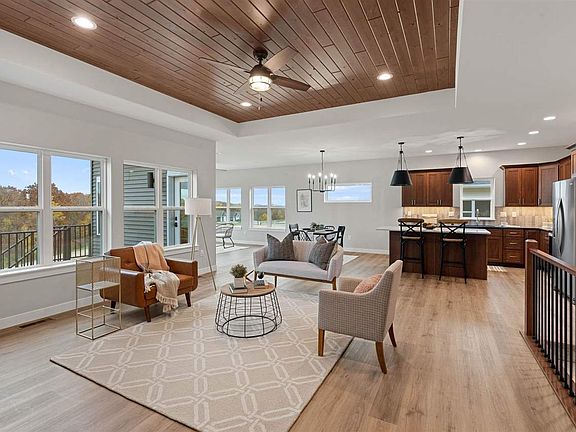 Welcome home to this exquisite 4-bedroom, 3-bath masterpiece crafted by MAS Construction. This thoughtfully designed home offers a perfect blend of elegance and functionality, boasting an open floor plan that provides all the room and space you desire. Step into a grand kitchen featuring a central island, quartz countertops, and a pantry that seamlessly connects to a spacious dining area and a comfortable living room adorned with a tray ceiling. The kitchen is a culinary haven, ideal for entertaining or daily family gatherings. The spacious primary suite showcases a tray ceiling, a luxurious primary bathroom connected to a walk-in closet, and the added convenience of an adjoining laundry room with a soaking sink. Step outside and savor moments of relaxation on the private deck. Descend to the expansive lower level, where you'll find a family room perfect for entertaining, a full bath, two additional bedrooms, and a huge storage area. The 2-car garage provides ample space for vehicles and storage needs. High-end finishes grace every corner of this 2,600+ square foot home, creating an atmosphere of luxury and sophistication. Experience low-maintenance living, allowing you to invest more time in the activities you love. Nestled on a serene cul-de-sac street, this home offers scenic beauty that complements its stylish design. Take advantage of this opportunity to own a functional new construction zero-entry home in the desirable SouthTown Area. Immerse yourself in the beauty of nature and make this your dream home. Schedule a viewing today to witness the great features and unparalleled comfort this home has to offer.